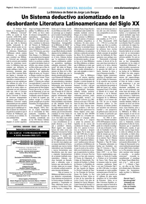 Distribución Región del Libertador Bernardo O’Higgins Biblioteca de Babel es un siste- Fausto De Goethe, La Paz verso, hecho que ocurrirá en de Babel”.
