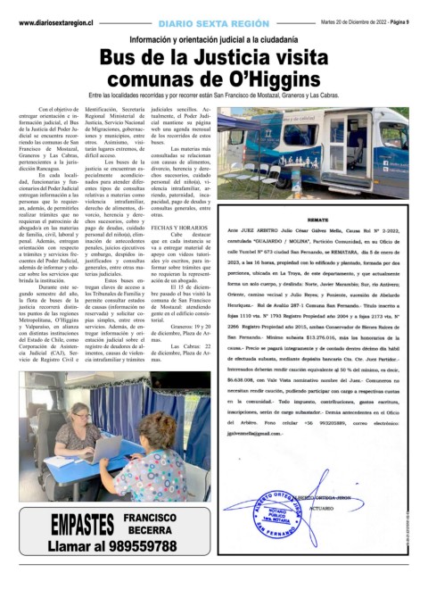 justicia recorrerá distin- de causas (información no de Mostazal: atendiendo