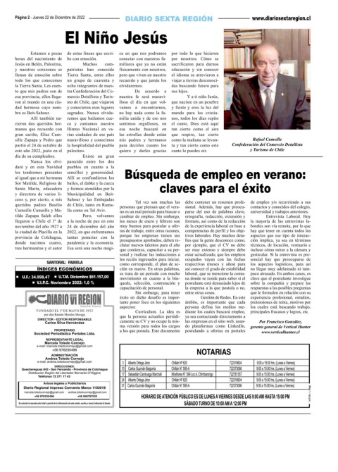 Avisos legales y Publicitarios 31 Carlos Guzmán Baigorria Chillán N° 595-A 722373066 9:00 a 15:00 hrs. (Lunes a Viernes)