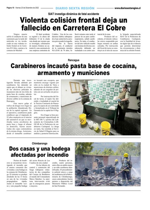 go. El siniestro se produjo del Cuerpo de Bomberos de carabineros de la Subco-