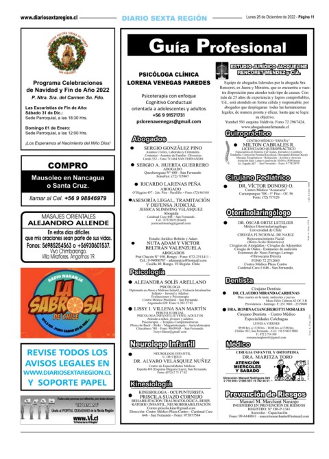 avisos y servicios Lunes 26 de Diciembre de 2022 - Página 11