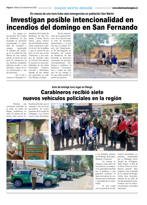de Bomberos de San nando, Cristian Rivera eros, no se descarta que