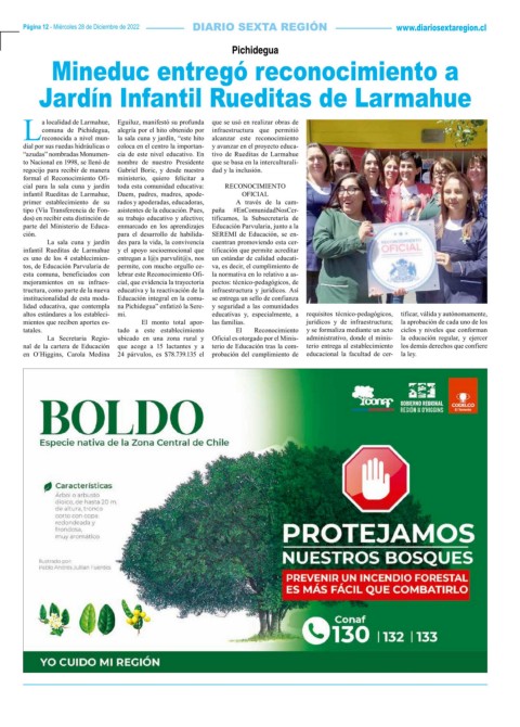 Página 12 - Miércoles 28 de Diciembre de 2022 www.diariosextaregion.cl