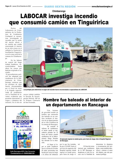 Calle Rancagua #574, San Fernando. herida por arma de fuego ingresó en estado grave, desplazara al sitio de su- del disparo, que aún per-