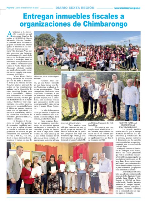 Página 12 - Jueves 29 de Diciembre de 2022 www.diariosextaregion.cl