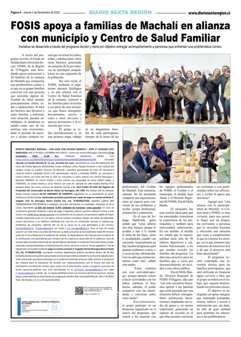 Publ.: 28 Octubre y 4, 11 y 14 noviembre2022. a hacer actividades con los FOSIS 0’Higgins, dijo que el grupo acordará en el tra-