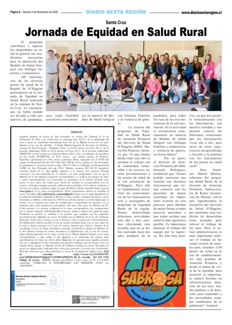 El adjudicatario deber suscribir el acta de remate mediante firma con su clave nica de Rural de la región. de mejor forma a todos de Salud O`Higgins,
