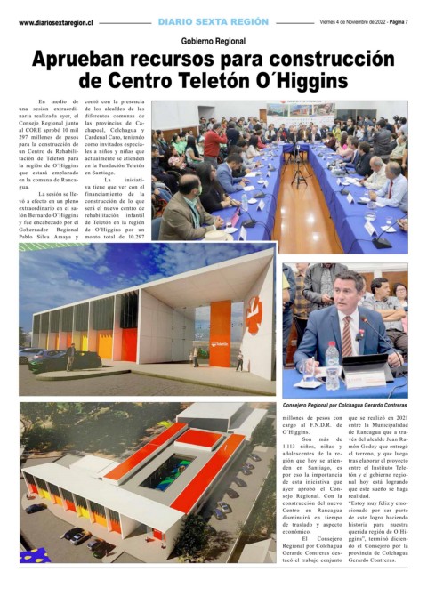 al CORE aprobó 10 mil chapoal, Colchagua y