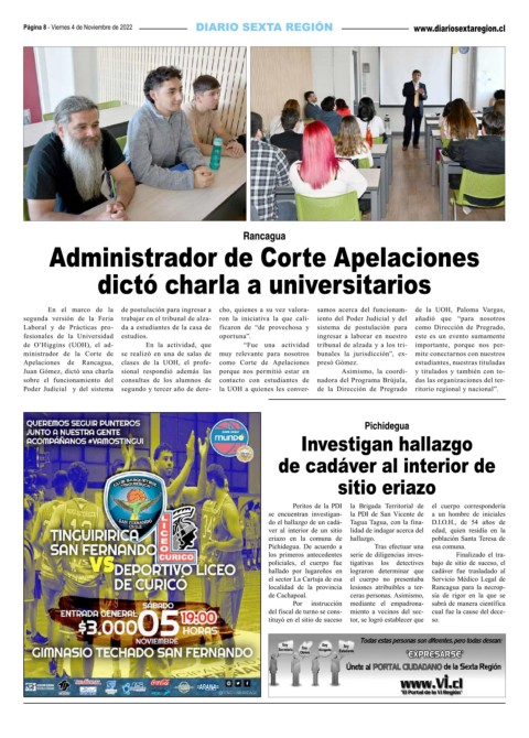 Apelaciones de Rancagua, clases de la UOH, el profe- como Corte de Apelaciones presó Gómez. estudiantes, nuestras tituladas