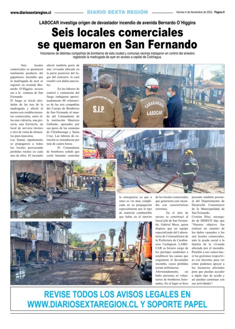 LABOCAR investiga origen de devastador incendio de avenida Bernardo O´Higgins