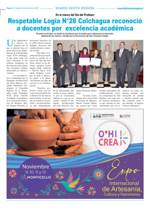 Logia N°28 Colchagua, conocimiento que anual-