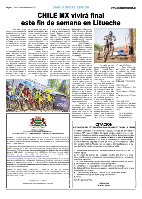 Página 6 - Sábado 5 de Noviembre de 2022 www.diariosextaregion.cl