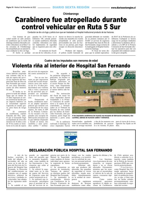 las cercanías de Chimbarongo que se requieren para esos efec- escapar en dirección desconoci- la madrugada al Hospital Institu- Comisaría de San Fernando efec-