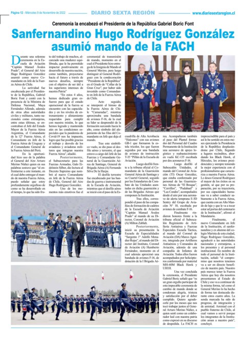Página 12 - Miércoles 9 de Noviembre de 2022 www.diariosextaregion.cl