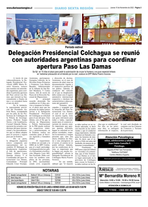 ternacional Las Damas, pletos de las personas, Inzunza. provincia de Colchagua Atención presencial y videoconferencia