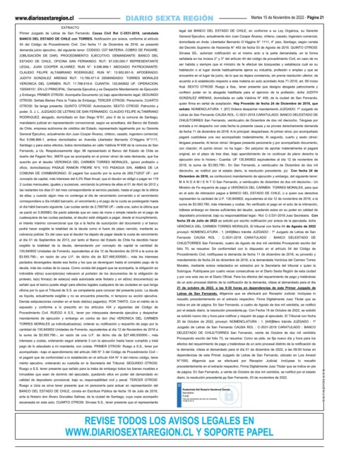Letras de San Fernando CAUSA ROL: C-3531-2018 CARATULADO: BANCO DELESTADO DE