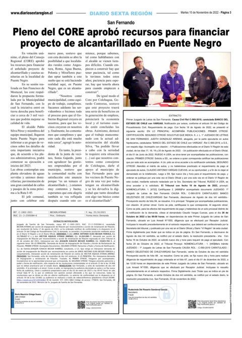 en el Diario VI Región y en el Diario Oficial, DEMANDA: A don JORGE ANTONIO ELÍAS BECKER FIEROGA, C.I.