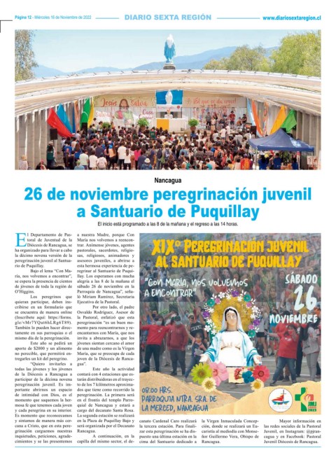 Página 12 - Miércoles 16 de Noviembre de 2022 www.diariosextaregion.cl