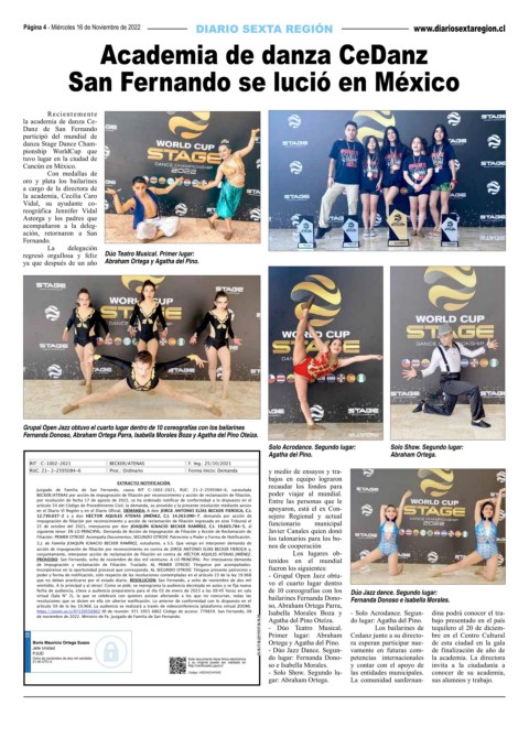 de noviembre de 2022. Ministro de Fe. Juzgado de Familia de San Fernando. Agatha del Pino Oteíza. do lugar: Agatha del Pino. bajo presentado en el país