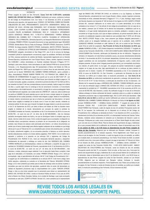 Letras de San Fernando CAUSA ROL: C-3531-2018 CARATULADO: BANCO DELESTADO DE
