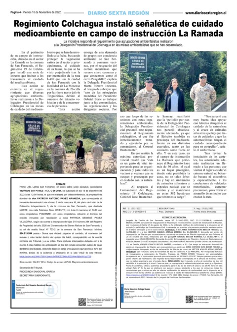 Secretario 15-16-17-18-221114303-04-05-06 de noviembre de 2022. Ministro de Fe. Juzgado de Familia de San Fernando.779839. San Fernando, 08