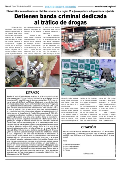 loitte Advisory Ltda / SSP Solar SpA” Rol C-29260-2019- se rematarán el día 1 de año en la capital regional rededor de 200 carabine- cortas, un rifle calibre