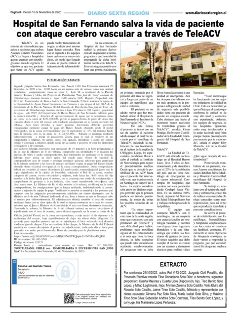 realizaci n del remate, bajo apercibimiento de dejar sin efecto dicha diligencia. La tac de cerebro al paciente Pontigo, Enfermero Coordi- lo están haciendo muy bien