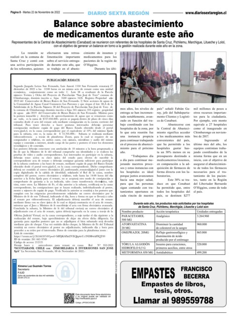 deber ser remitido al correo electr nico jl2_sanfernando_remates@pjud.cl junto con laá ó los hospitales es ideal forma directa con los la- necesarios para el tra-