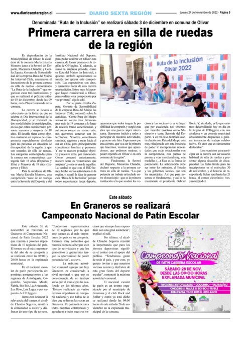 Para la alcaldesa de Oli- mos hecho varias actividades en la rrera en silla de ruedas. “Lo que y los gobiernos locales, que son de noviembre, y el horario de re-
