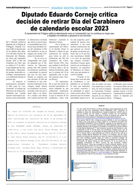 O’Higgins, Eduardo Cor- bierno haya decidido reti- representante del Distri- mismas celebraciones las