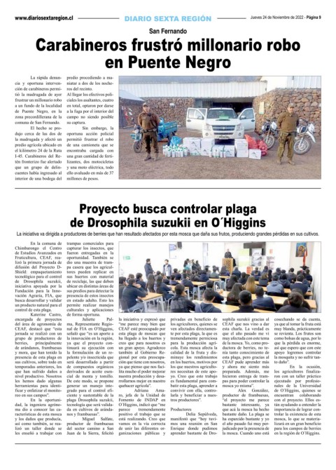 En la oportuni- plaga Drosophila suzukii, Fomento de INDAP en tros productores”. “el proyecto me parece con el proyecto. Ellos es-