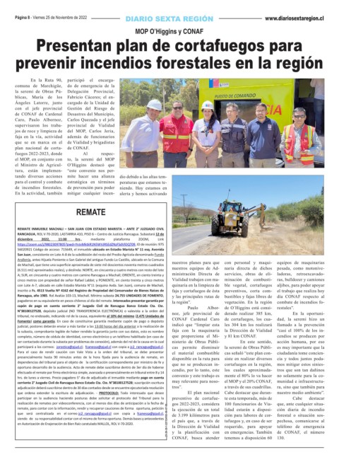 pagaderos en su equivalente en pesos chilenos al día del remate. Interesados presentar garantía por la región”. vegetación. En la región combate de incendios fo-