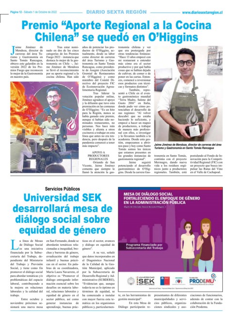 Página 12 - Sábado 1 de Octubre de 2022 www.diariosextaregion.cl