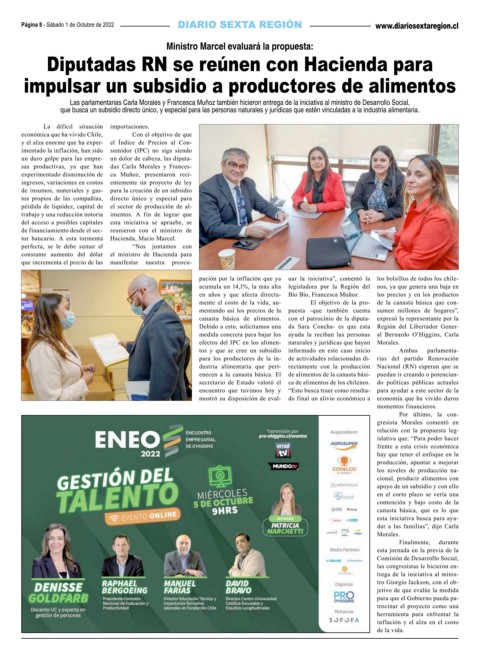 para los productores de la in- de actividades relacionadas di- rias del partido Renovación