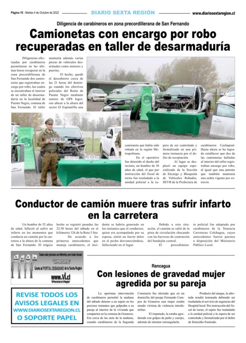 O SOPORTE PAPEL comparten en la comuna de Graneros. El imputado, la estaba agre- a la unidad policial a la espera de ser
