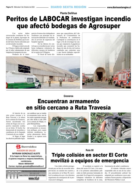 Correo: myriam.gonzalez@banmedica.cl Una triple colisión protago- El accidente se registró a la funcionarios de salud y carabineros.