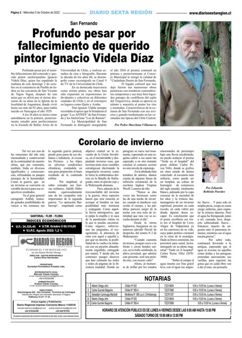 Avisos legales y Publicitarios 29 Carlos Guzmán Baigorria Chillán N° 595-A 722373066 9:00 a 15:00 hrs. (Lunes a Viernes)