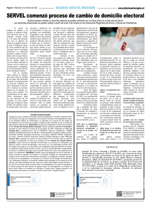 EXTRACTO NOTIFICACIÓN Myriam Joanna Saavedra Verdugo con derecho a sufragio que Electorales luego de 20 a