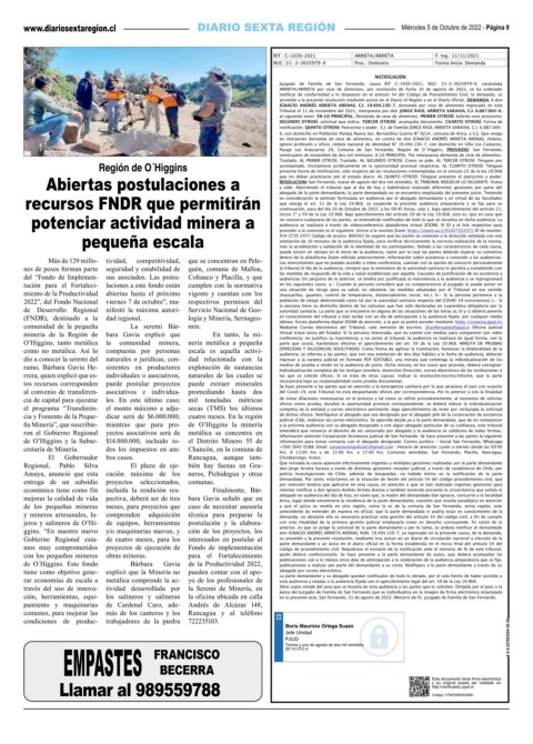 de los pequeñas mineras meses, para proyectos que caso de necesitar asesoría a que el juicio se ventila en otra región, como la es de la comuna de San Fernando, sexta región, este