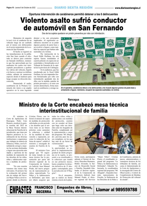 ción San Juan cuando el afec- fiscal Edith Orellana, los seis