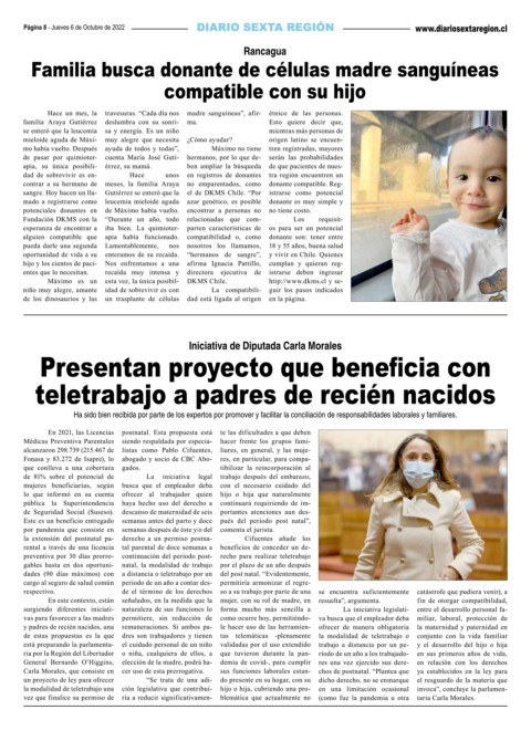sangre. Hoy hacen un lla- Gutiérrez se enteró que la el de DKMS Chile. “Por istrarse como potencial