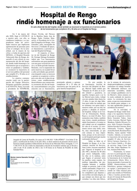 del hospital, trabajé en la Cen- Hospital de Rengo rindió hom-