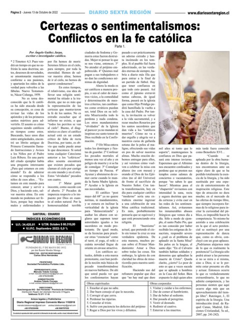 seguimos siendo católicos al cielo”. Bueno, el diag- al parecer ya no mandan ni dan vida a los “católicos