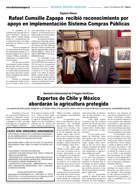Corfo O’Higgins, HortiCrece. clima. Además, se mostrarán las para generar empleos, reducir der sus necesidades, atender el horticultores puedan viajar y co-