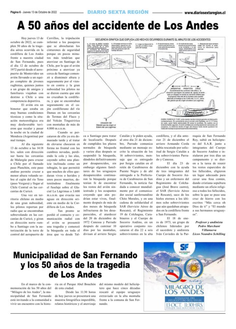“Milagro de los Andes”, la mu- Desde las 11:30 horas rescató al equipo uruguayo