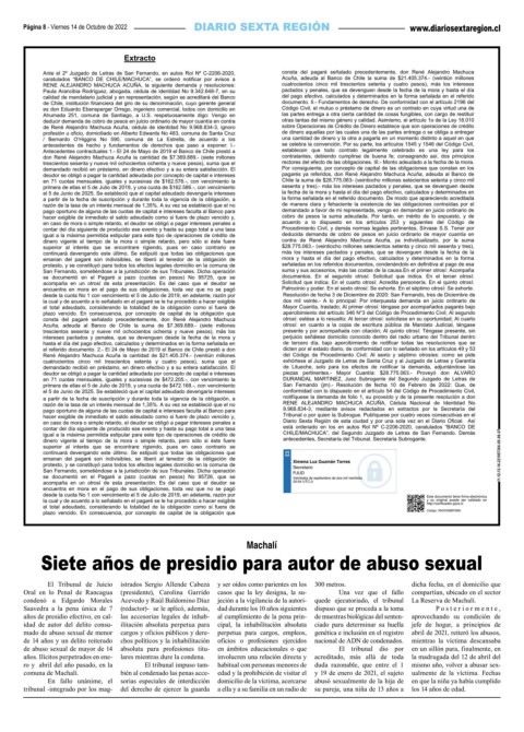 comuna de Machalí. bién al condenado las penas acce- edad y la prohibición de visitar el y 19 de enero de 2021, el sujeto ualmente de la víctima. Fechas