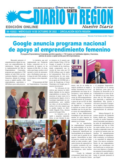 www.diariosextaregion.cl Miércoles 19 de Octubre de 2022 - Página 1