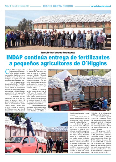 Página 12 - Jueves 20 de Octubre de 2022 www.diariosextaregion.cl