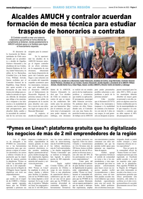 República, Jorge Bermú- los municipios; instancia Arévalo, Alcalde Santa Cruz y César Rojas, Asesor Jurídico AMUCH y Director Centro de Gestión y Liderazgo