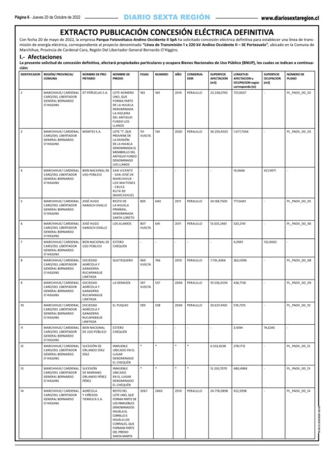10 MARCHIHUE/ CARDENAL SOCIEDAD EL PUQUIO 599 538 2006 PERALILLO 20.637,4160 576,7315 - PL_PAOII_00_10